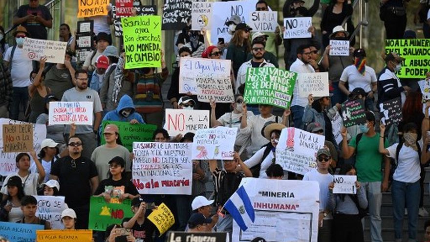 Cientos de salvadoreños protestaron este domingo para rechazar la minería metálica que impulsa el presidente, Nayib Bukele, al considerar que provocará la contaminación de los recursos naturales, especialmente el agua.
