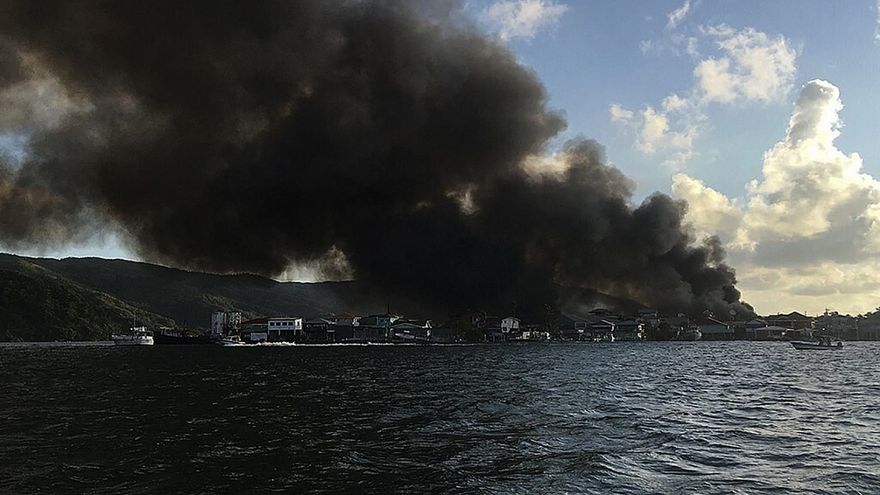El incendio comenzó en horas de la madrugada, por causas aún sin determinarse, en viviendas a la orilla del mar y rápidamente se extendió a otras casas y negocios, según los bomberos.