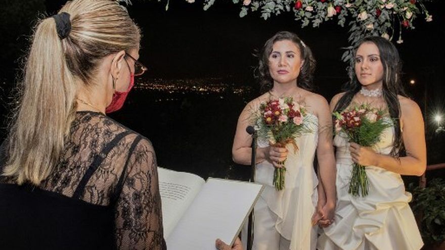 Dos mujeres contrajeron matrimonio la madrugada de este martes en Costa Rica, que se convirtió en el primer país centroamericano en aceptar el casamiento igualitario, aunque la fecha no tuvo los festejos esperados por la pandemia de COVID-19.