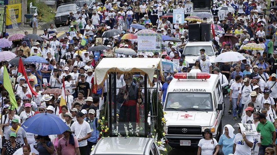 La larga caminata concluirá este domingo en el municipio de Ciudad Barrios, pueblo natal del beato Romero, en donde se realizará un acto religioso y cultural en el marco del centenario de natalicio de este mártir.