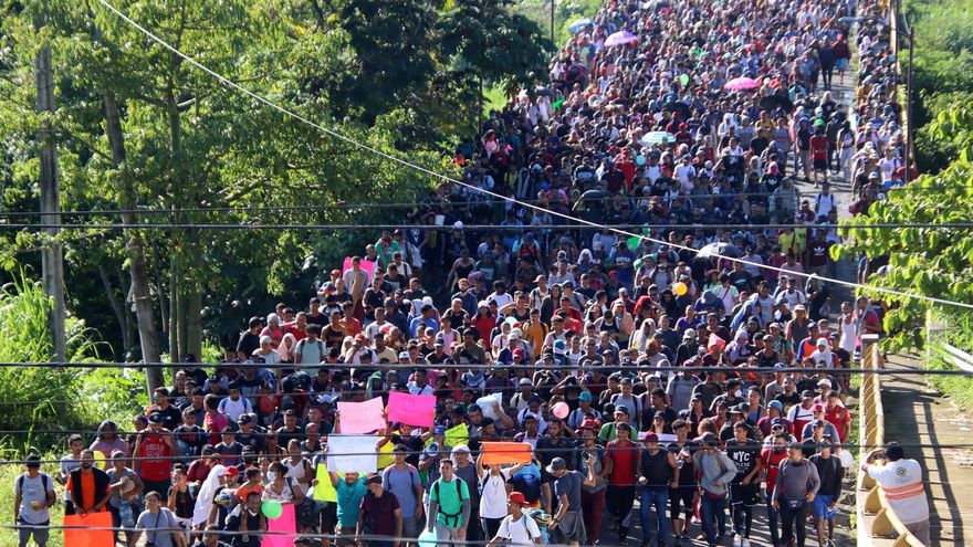 Añadió que la caravana "tiene características similares" a la del sábado con "embarazadas y niños" viajando a pie. Imágenes divulgadas por el gobierno mostraron a los migrantes retenidos sobre la carretera que lleva a la frontera hondureña con varios hombres descalzos y algunas mujeres cargando bebés.