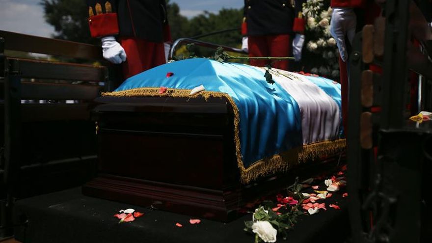 Después de un homenaje de la fuerza marina y aérea, de la policía y del Ejército, con tres helicópteros y varios aviones sobrevolando el área, los restos mortales del expresidente, de 72 años, fueron cargados a hombro por diez cadetes hacia el interior del Palacio, donde estaba presente su familia y sus amigos más cercanos.