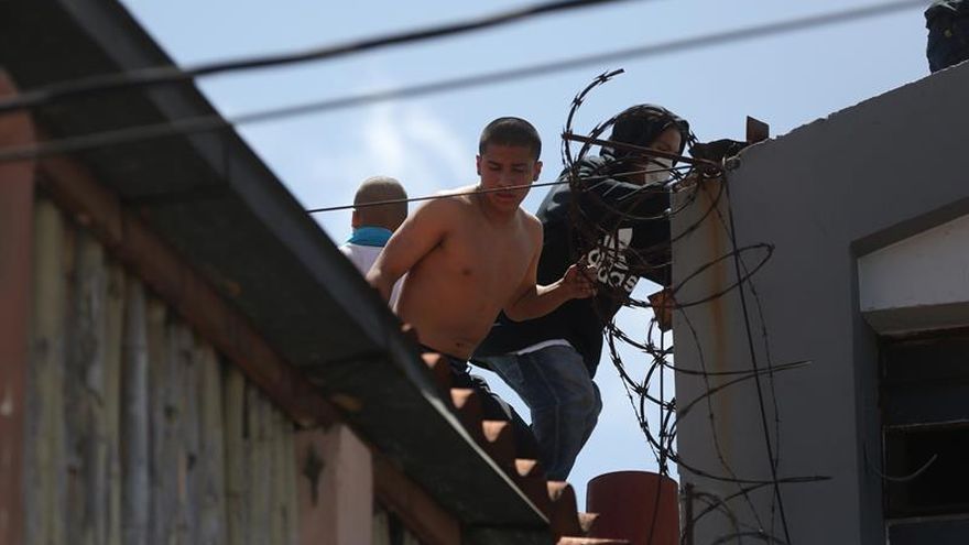 Varios de los presos se subieron a los techos de residencias aledañas al centro de menores, según muestra la televisión guatemalteca.