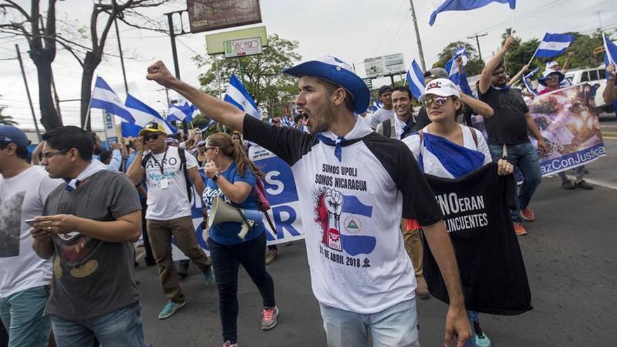 "Nos estamos manifestando de forma pacífica y condenamos los ataques en Chinandega y León. El gobierno ya nos tiene cansados con su doble discurso", reclamó Edwin Carcache, dirigente del estudiantil Movimiento 19 de Abril.
