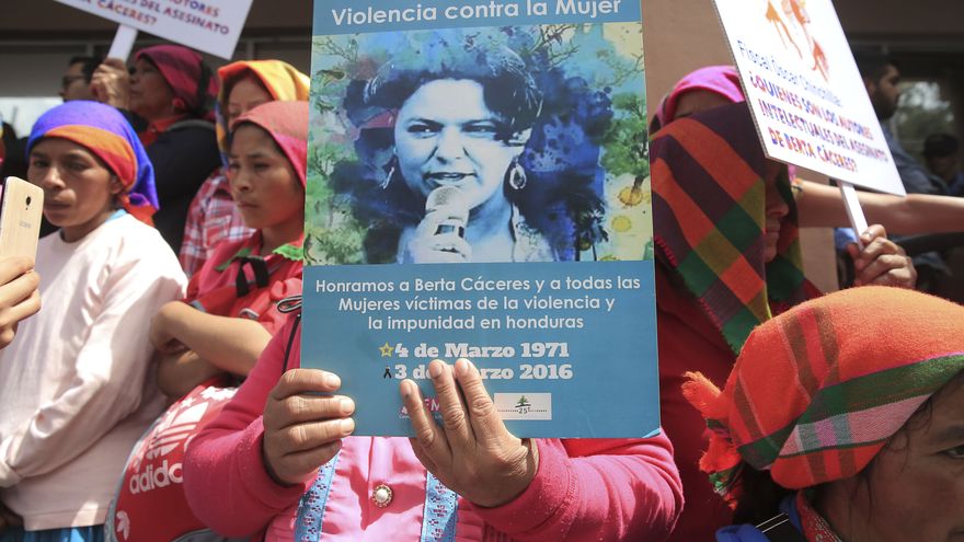 Berta Cáceres, líder de la comunidad indígena lenca, fue asesinada el 3 de marzo de 2016 en su vivienda de La Esperanza, pese a contar con medidas cautelares de la Comisión Interamericana de Derechos Humanos (CIDH), para protegerla de las constantes amenazas que recibía.