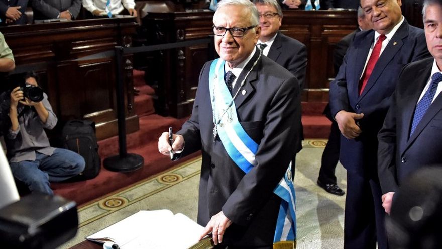 Maldonado, de 79 años y quien se desempeñaba como vicepresidente de Guatemala, juró en el cargo de Presidente ante el Congreso, tal y como lo establece la Constitución en caso de ausencia "absoluta o temporal" del presidente.