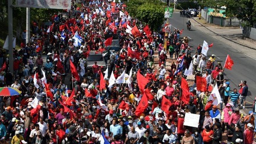 "Fuera JOH" (iniciales del mandatario), gritaron los manifestantes durante la travesía de tres kilómetros desde el Hospital Escuela de Tegucigalpa a la Embajada de Estados Unidos.