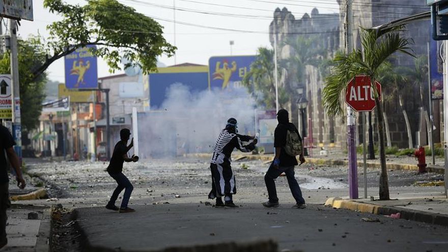Un grupo de manifestantes lanzan morteros durante una manifestación en la ciudad de Masaya (Nicaragua) el 2 de junio de 2018, durante el día número 46 de protestas en contra del gobierno de Daniel Ortega. / EFE