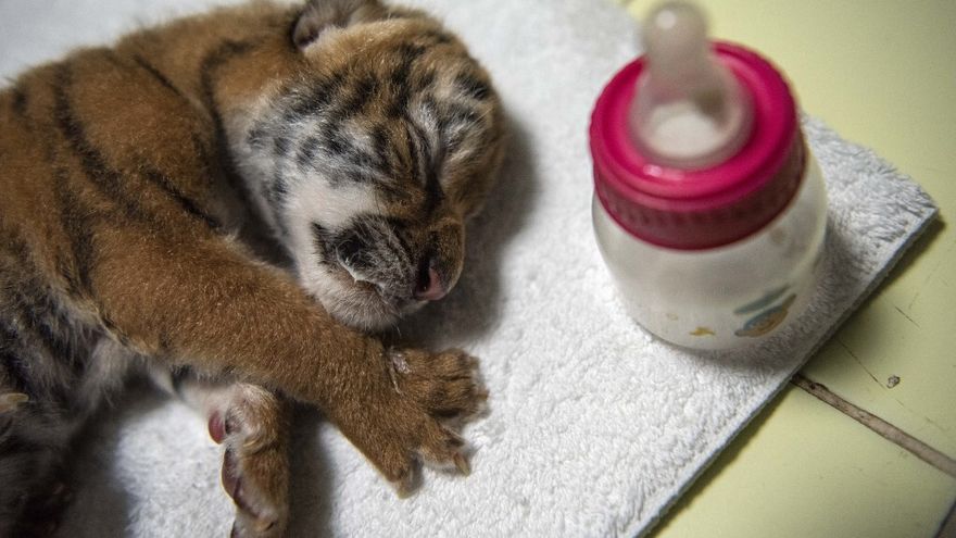 "Esta muy tierna, estamos cuidándola para que sobreviva porque esta es la etapa difícil para ella por el calostro (leche materna) que no lo mamó para sus defensas", reconoció Sacasa, quien ha logrado reproducir otros tigres.