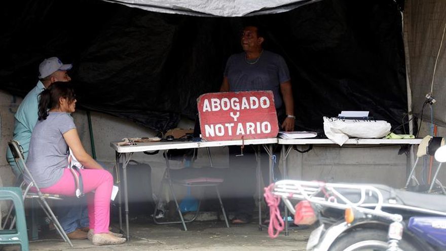 "Los clientes se me han quintuplicado en los últimos días, pero generalmente es gente con plata (dinero). Los pobres nunca pueden huir", lamenta Héctor Moncada, que desde hace diez años regenta un pequeño puesto de abogacía en plena acera.