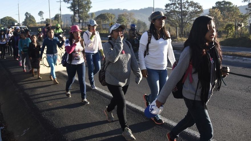 Las niñas emprendieron la caminata por carretera hacia el centro de Ciudad de Guatemala para llamar la atención por la tragedia que conmocionó al país el 8 de marzo de 2017, observó un fotógrafo de la AFP.