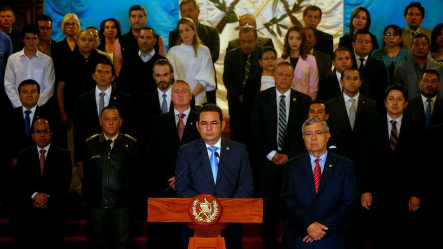 Rodeado del vicepresidente Jafeth Cabrera, ministros de Estado y algunos familiares de gente investigada por la Cicig, el presidente dio por terminado el lunes de forma "inmediata y definitiva" el acuerdo que el Estado firmó con la ONU para el establecimiento de la Comisión en 2007.