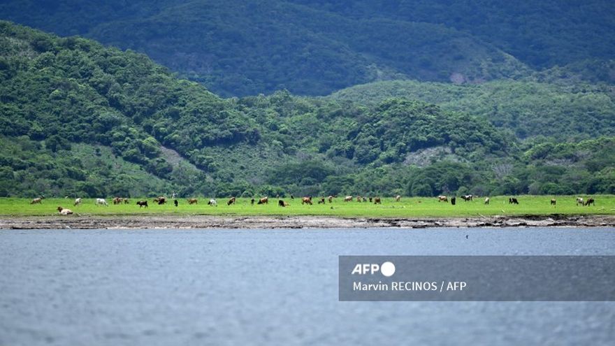 El Salvador/Una planta flotante de color verde claro, que se alimenta de la contaminación de químicos, ha cubierto las aguas del lago Suchitlán en El Salvador, paralizando la pesca artesanal y el turismo.