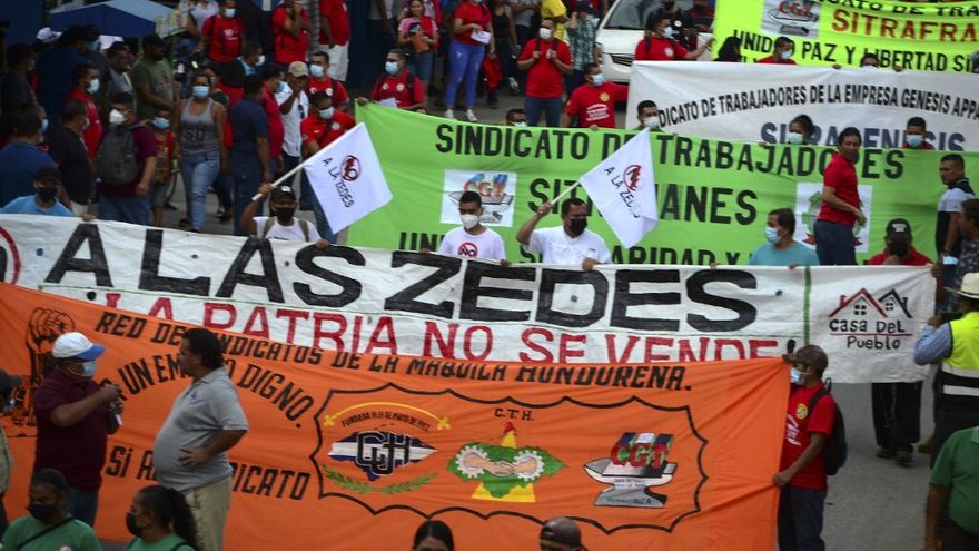 Samuel Gómez, un obrero de una maquila de 29 años, dijo a la AFP que los empresarios de "Morazán" amenazan con "desalojar a los pobladores del vecindario" porque la ley del Congreso que creó las ZEDE las faculta para expropiar si se quieren expandir.