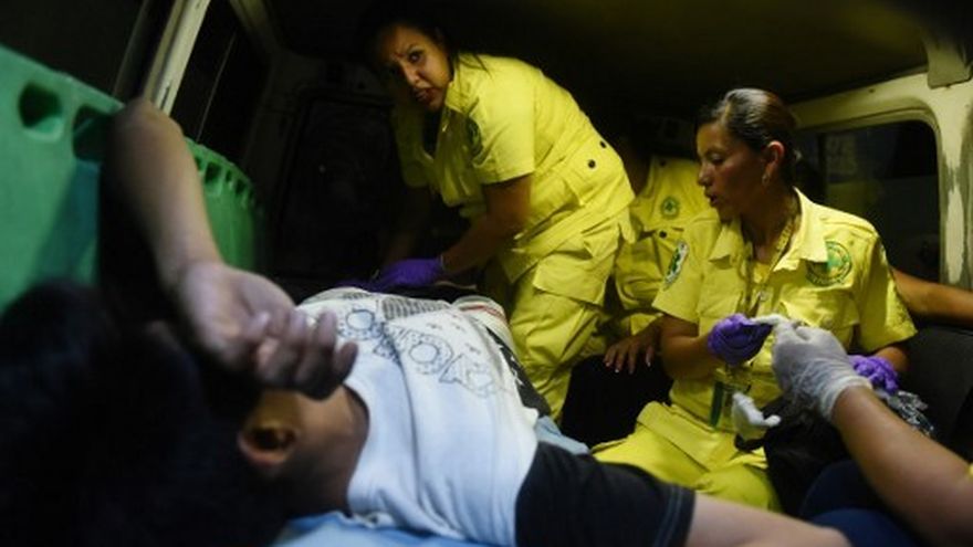 A toda prisa, las cuatro mujeres subieron a la vieja ambulancia, que se lanzó por las solitarias calles hasta donde esperaba un joven lesionado de una pierna, quien fue trasladado a un hospital público de la populosa colonia Zacamil, en la periferia norte de San Salvador.
