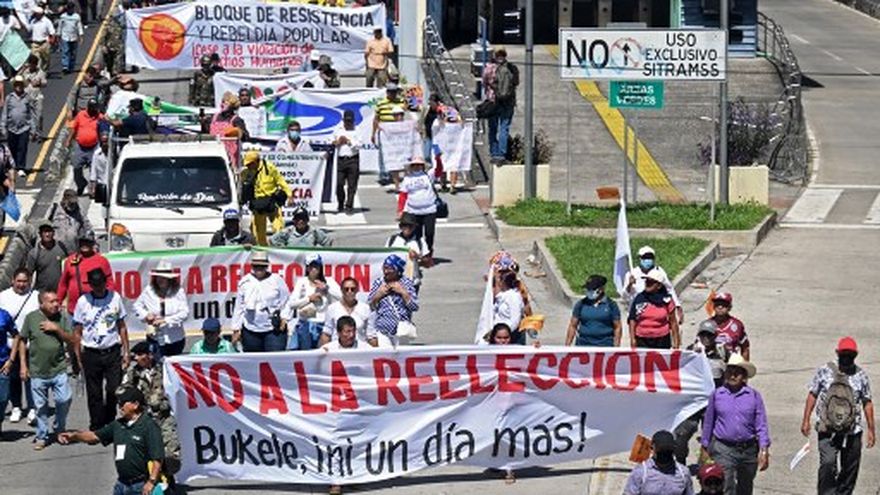 El Salvador/Bajo un sol calcinante, cientos de salvadoreños marcharon este viernes para rechazar la intención del presidente Nayib Bukele de ser reelegido y denunciar la detención de "inocentes" en la lucha sin cuartel contra los grupos criminales.