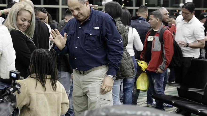El presidente de Costa Rica, Luis Guillermo Solís, despidió hoy a uno de los últimos grupos de migrantes cubanos en salir de Costa Rica tras cuatro meses de estar varados en este país en su ruta migratoria a Estados Unidos.