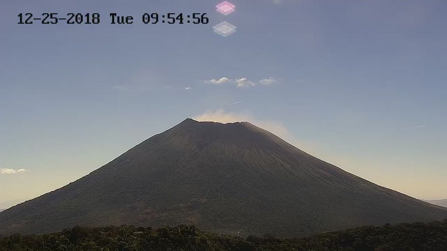 "Se observa emisión de pulsos de gases en volcán Chaparrastique", publicó la entidad gubernamental en sus redes sociales junto a dos imágenes en las que se ve una pequeña nube de gases sobre el volcán.