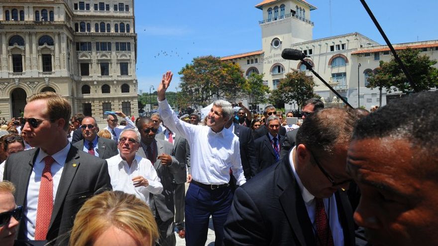 El secretario de Estado estadounidense, John Kerry, caminó este viernes por las calles y plazas de la La Habana Vieja, rodeado de escoltas, periodistas, turistas y curiosos.
