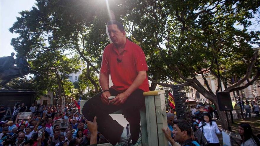 "He dado la orden de que en las próximas horas en todas las calles de Caracas, en todos los postes, en las vallas, esté la imagen de nuestro libertador Bolívar y esté la imagen de nuestro padre Chávez", dijo Rodríguez frente a un grupo de partidarios en la céntrica plaza Bolívar de Caracas.