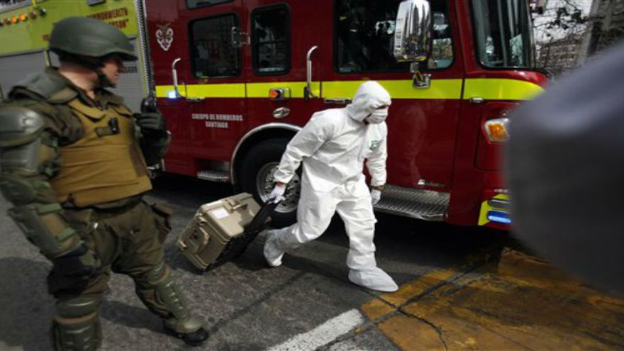La oleada de denuncias de supuestos artefactos explosivos más los falsos avisos de bomba se desató con fuerza después de que el lunes terroristas detonaron una poderosa bomba en una galería comercial contigua a una de las más grandes estaciones del subterráneo de Santiago, Escuela Militar, que dejó 14 heridos.