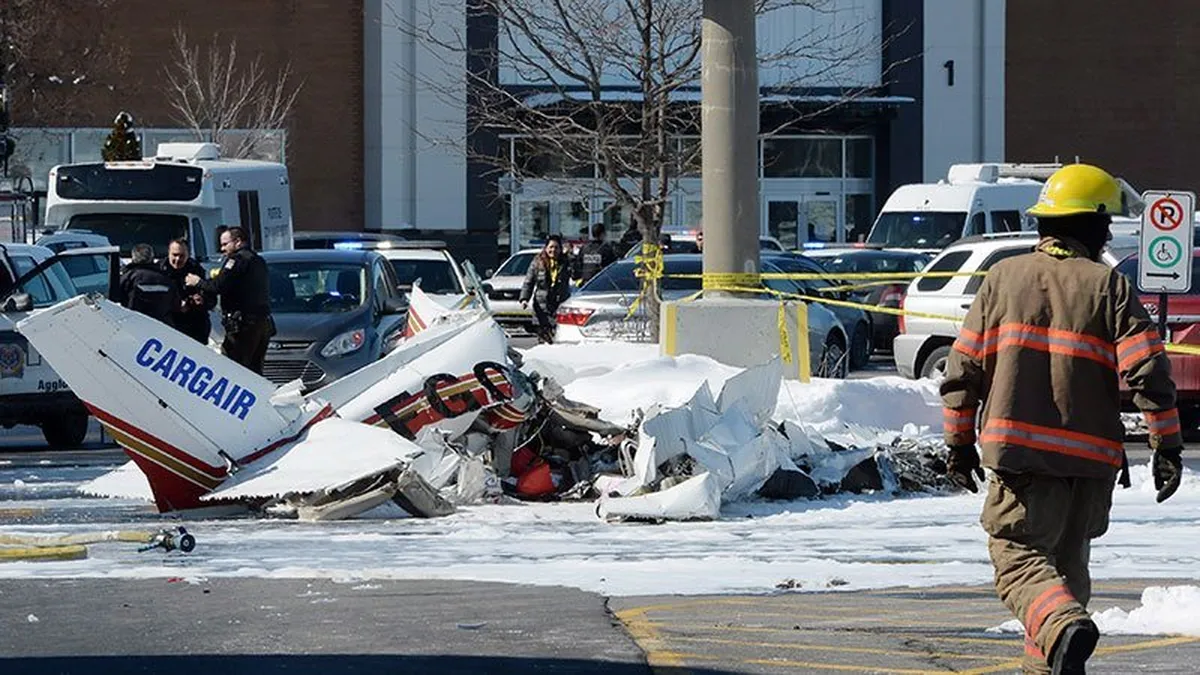 Uno de los aviones cayó sobre el techo del centro comercial Promenades Saint-Bruno, a unos 20 kilómetros al este de Montreal, mientras que el otro terminó en el estacionamiento, a 20 metros de una de las entradas principales.