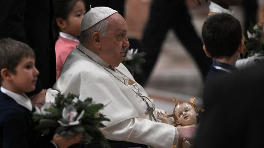 "Nuestro corazón esta noche está en Belén, donde el Príncipe de la Paz sigue siendo rechazado por la lógica perdedora de la guerra, con el rugir de las armas que también hoy le impiden encontrar una posada en el mundo", expresó el pontífice argentino durante la misa de Nochebuena en la Basílica de San Pedro, del Vaticano.