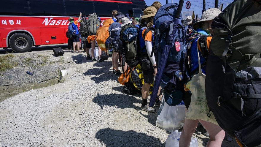 En el enorme campamento en el condado de Buan, decenas de miles de jóvenes desmontaron sus carpas y recogieron sus pertenencias antes de subir a autobuses que tenían que llevarlos a alojamientos alternativos en Seúl y sus alrededores.