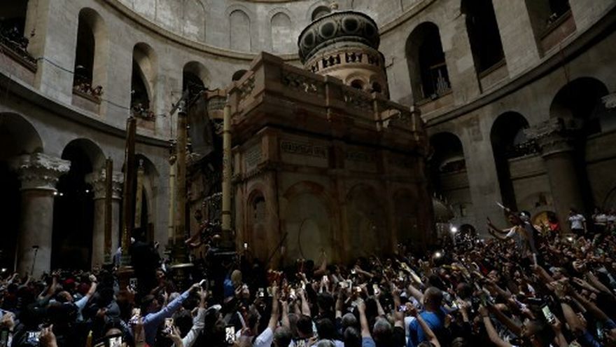 Más de 30.000 cristianos participaron este sábado en Jerusalén en la tradicional ceremonia del "fuego sagrado" en la víspera de la Pascua ortodoxa, un rito milenario que simboliza la eternidad.