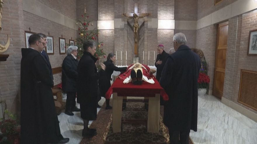 Ciudad del Vaticano, Santa Sede/Con la apertura este lunes de la capilla ardiente de Benedicto XVI, fallecido el sábado a los 95 años, cientos de fieles podrán velar por tres días el cuerpo del papa emérito en la basílica de San Pedro, cuyas vestiduras indican que no reinaba.