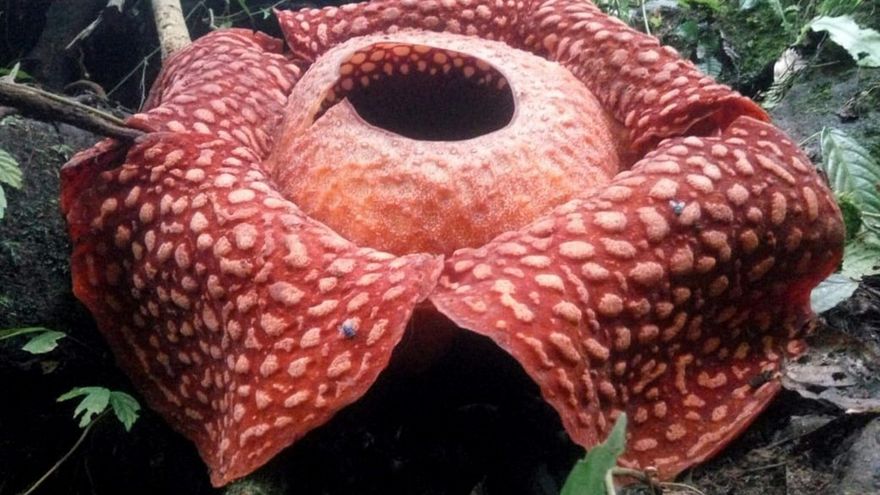 Esta planta, que alcanza más de un metro de diámetro y huele literalmente como un cadáver en descomposición, crece en el sudeste de Asia y es la flor nacional de Indonesia. Se trata de una flor parasitaria que se nutre de raíces de árboles y, aparte de su aroma fétido, emite calor, unas características que le sirven para atraer insectos polinizadores. La planta es poco conocida, debido a que permanece oculta durante todo su ciclo vital, y aún se siguen encontrando nuevos tipos.