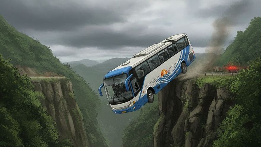 Imágenes divulgadas por la prensa local muestran el autobús destrozado en el abismo y a un grupo de rescatistas evacuando a personas en camillas.