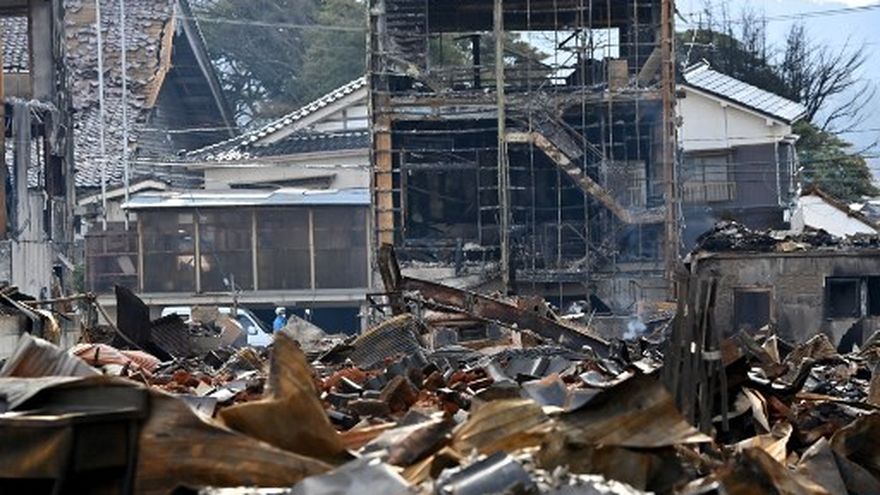 La AFP presenció escenas de destrucción en las localidades costeras de Anamizu y Wajima, incluidos coches calcinados en un mercado arrasado por el fuego.