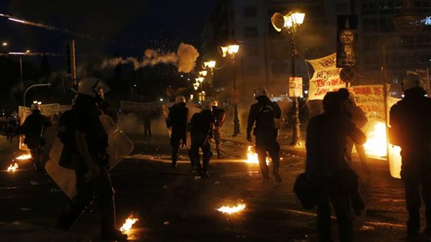 Muchos de los manifestantes enmascarados llevaban bates de madera y pedazos de pavimento, en los peores enfrentamientos de que se formó el gobierno del primer ministro Alexis Tsipras hace seis meses.