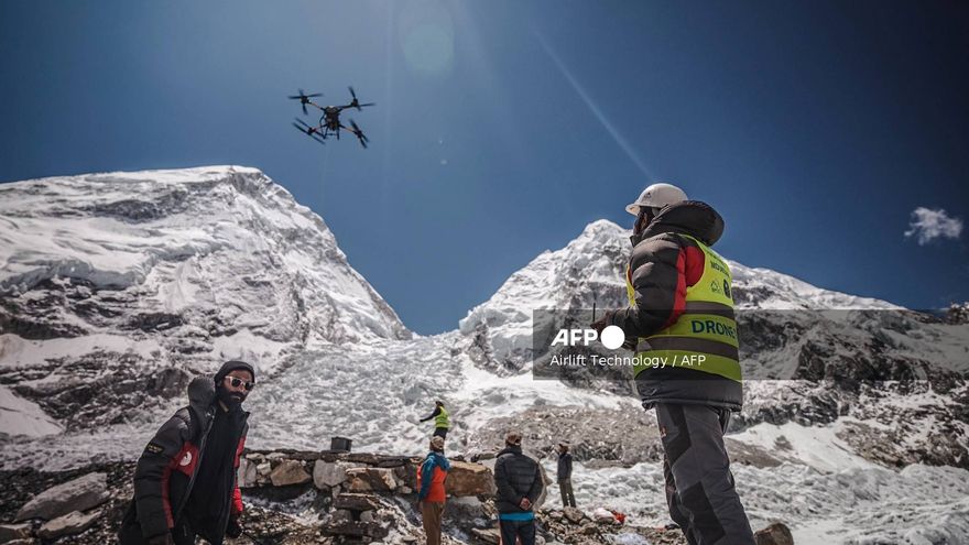 Dos drones de carga pesada DJI FC 30 fueron enviados hasta el Campamento 1, a 6.065 metros de altura, donde ayudaron a transportar ya 300 kg de basura durante la temporada de escalada de primavera, que suele durar desde abril hasta principios de junio.