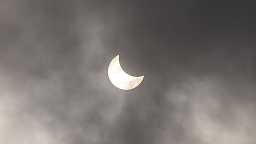 Observadores de estrellas en Exmouth, noroeste de Australia, estacionaron sus casas rodantes, instalaron telescopios y usaron lentes protectores para ver a la luna sobreponerse lentamente a la superficie solar.