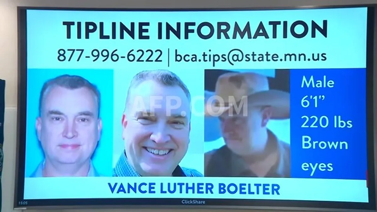 La policía identificó a Vance Luther Boelter, "un hombre blanco de 57 años", como el principal sospechoso, buscado por "cientos" de agentes en los suburbios del norte de Mineápolis.