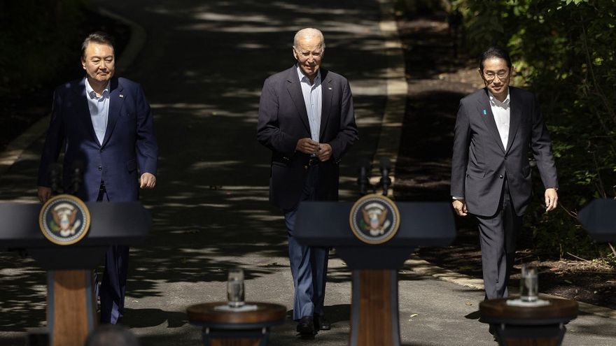 En la bucólica residencia presidencial Biden elogió la "valentía política" del presidente surcoreano, Yoon Suk Yeol, y del primer ministro japonés, Fumio Kishida, por pasar página a la animosidad histórica.