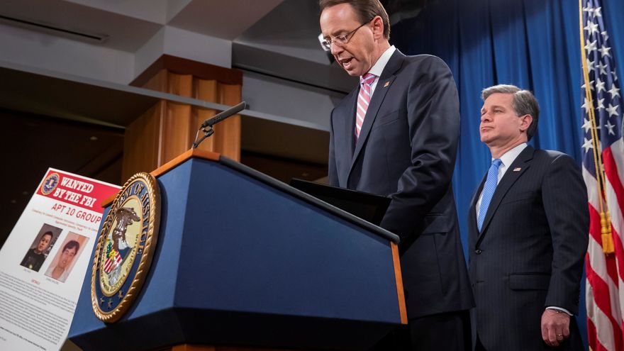 El vicefiscal general de EE.UU., Rod Rosenstein, precisó en una rueda de prensa que los dos acusados, identificados como Zhu Hu y Zhang Shilong, son sospechosos de "conspiración para cometer intrusiones informáticas contra decenas de compañías en Estados Unidos y el mundo".