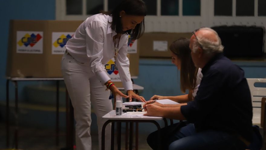 "En todos los centros del país estamos viendo una participación apoteósica y yo me siento muy orgullosa. Estamos concretando un sueño y una lucha de libertad", dijo Machado, inhabilitada para presentarse a estos comicios, luego de votar en Caracas.