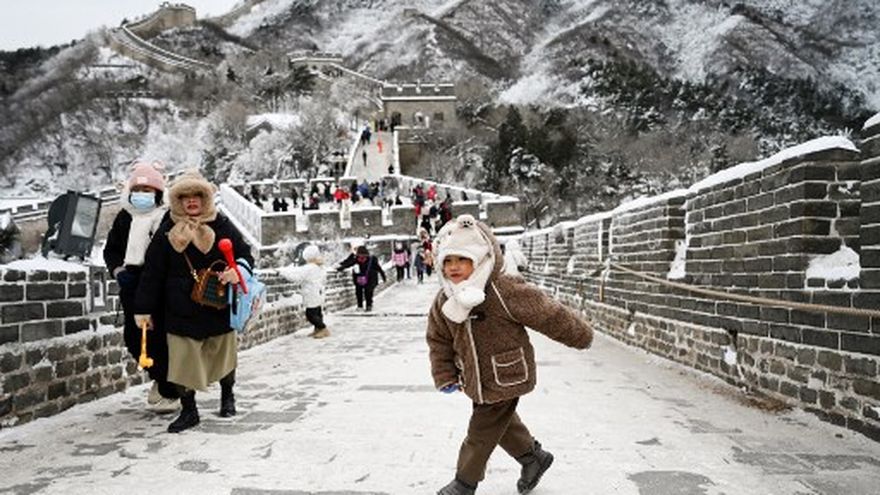 Turistas en la capital desafiaron el clima gélido para visitar los trechos de la Gran Muralla situados en las montañas que bordean la ciudad, donde un monumento icónico se encontraba cubierto de nieve.
