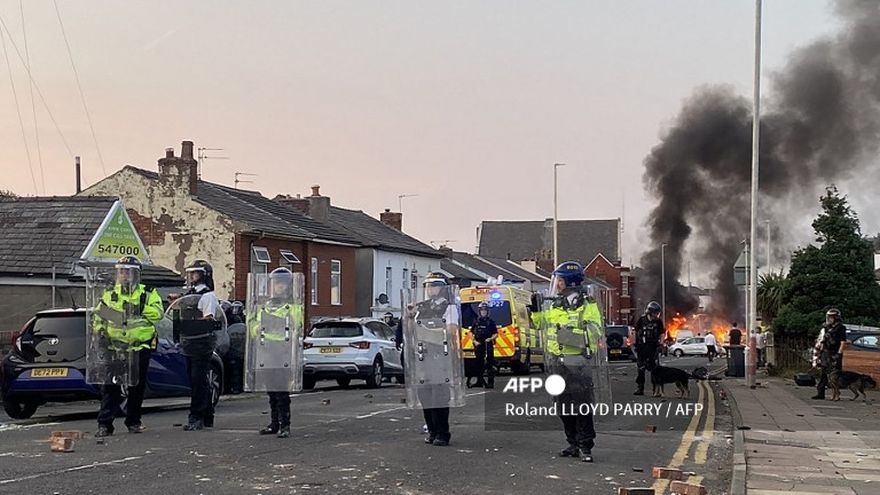 Reino Unido/Violentos enfrentamientos estallaron este martes entre policías y manifestantes en Southport, en el norte de Inglaterra, donde un ataque con cuchillo durante una clase de baile cobró la vida de tres niñas.