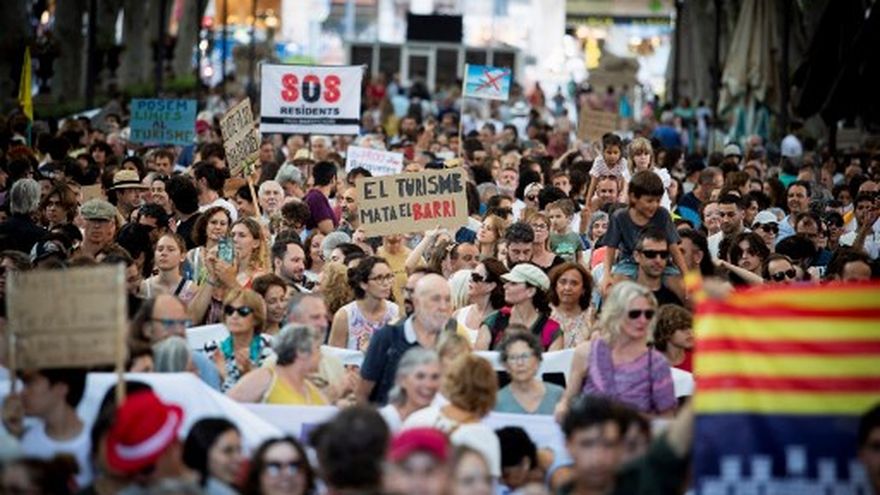 "Mallorca no está en venta" o "SOS residentes: Stop turismo" o "Digital nomads go home" eran algunas de las consignas, entre las cuales figuraba también "No es turismofobia, son cifras: 1.232.014 habitantes, 18 milliones de turistas".