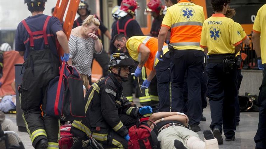 Cincuenta y cuatro personas resultaron heridas, una de gravedad, en un accidente ocurrido este viernes cuando un tren chocó con el tope de la vía al llegar a una estación del centro de Barcelona.