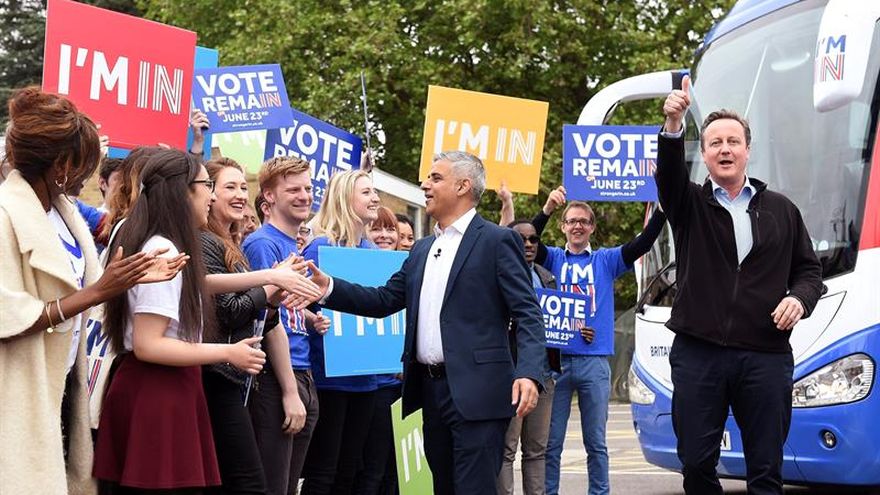 El nuevo alcalde laborista de Londres, Sadiq Khan, se unió hoy al primer ministro británico, el conservador David Cameron, en un acto de campaña contra el "Brexit", en el que ambos expusieron las ventajas de permanecer en la Unión Europea.