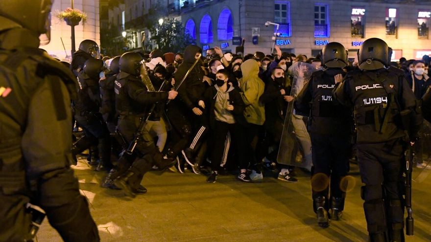 En la capital española, cientos de personas se concentraron en la céntrica Puerta del Sol, fuertemente resguardada por fuerzas de seguridad, con pancartas que decían "Basta de censura" y pedían "Libertad" para el rapero Pablo Hasél.