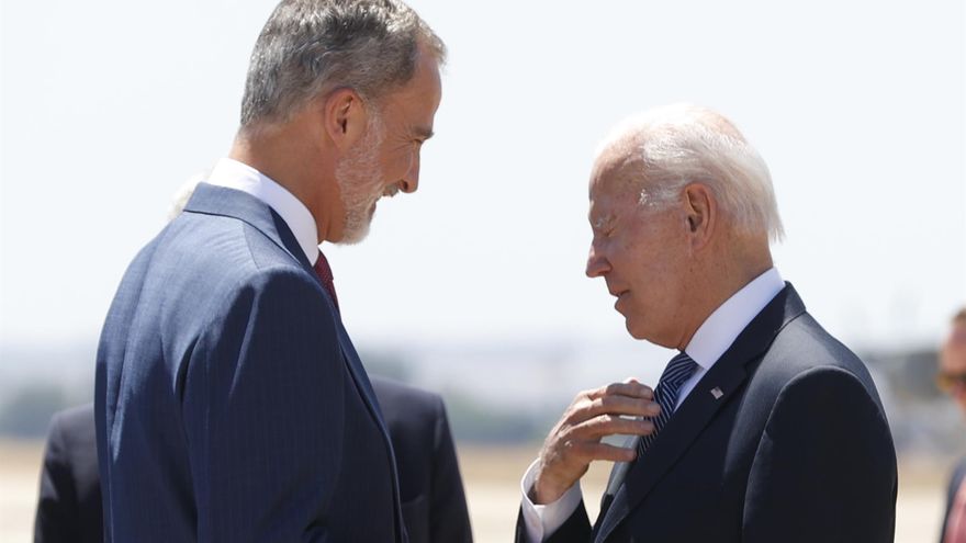 Biden llegó de Alemania al aeropuerto militar de Torrejón de Ardoz en el avión presidencial Air Force One, y fue recibido por el rey Felipe VI, con quien mantuvo un diálogo cordial, antes de trasladarse a la residencia del presidente del gobierno español, La Moncloa, donde se entrevistará con Pedro Sánchez.