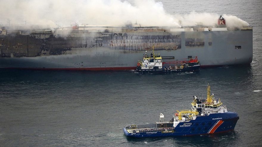 El buque Fremantle Highway navegaba bajo bandera panameña y partió del puerto alemán de Bremerhaven hacia Port Said, en Egipto, y llevaba unos 3.000 automóviles a bordo, de los cuales 25 eran coches eléctricos. El fuego podría haberse iniciado en uno de esos vehículos eléctricos y se propagó rápidamente al resto, cree la Guardia Costera.