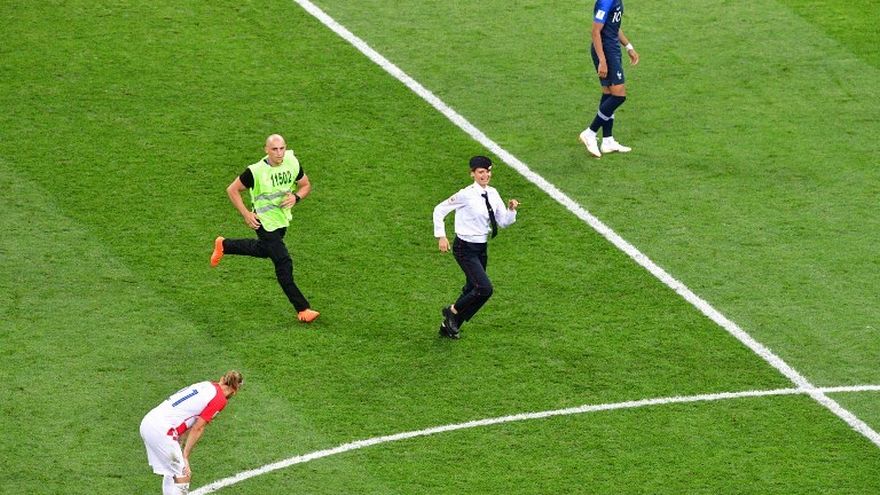 La joven Veronika Nikúlshina saltó al campo durante la segunda parte del partido entre Francia y Croacia, que terminó con victoria del equipo galo (4-2).
