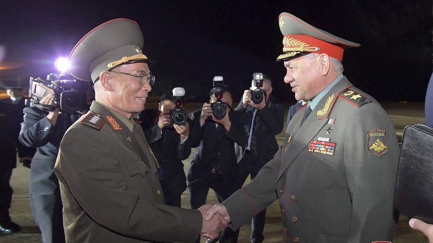 En el aeropuerto internacional de Pyongyang, el ministro ruso de Defensa, Serguéi Shoigú, recibió una "cálida bienvenida" con el himno nacional ruso y la guardia de honor el martes por la noche, informó la agencia de prensa estatal KCNA.